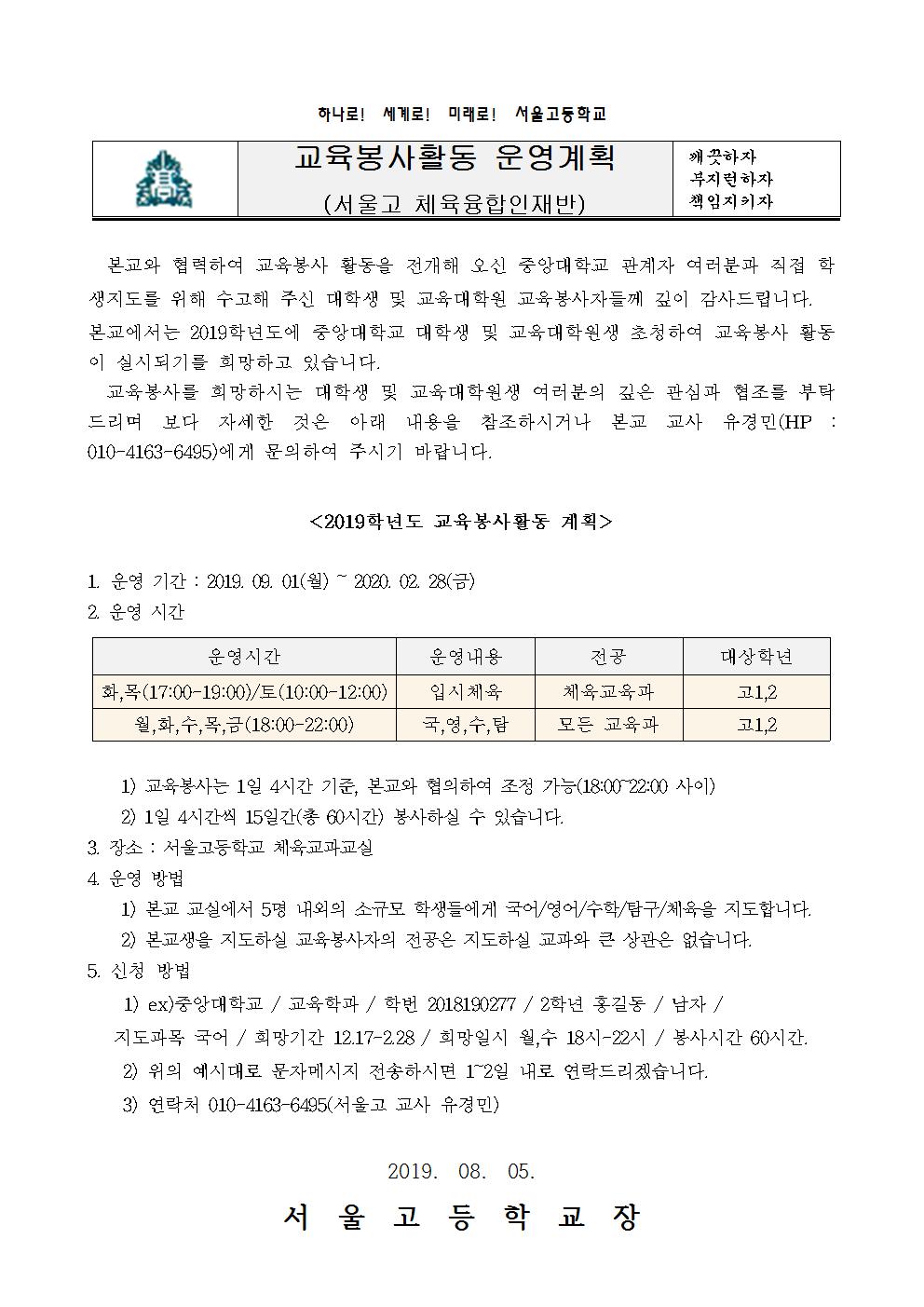 2019학년도 중앙대학교 교육봉사활동 운영계획(서울고_체육융합인재반).hwp