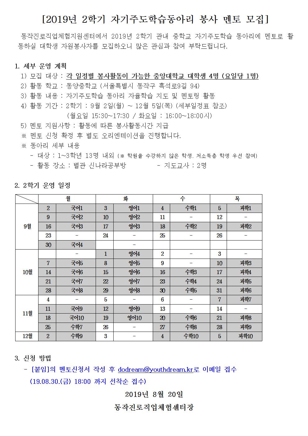 [동진체발 19-068] 붙임. 2019년 2학기 자기주도학습동아리 봉사 멘토 모집 안내문.hwp