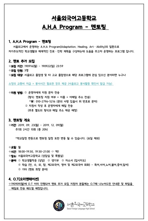 (교육봉사)서울외국어고등학교 A.H.A Program 멘토링