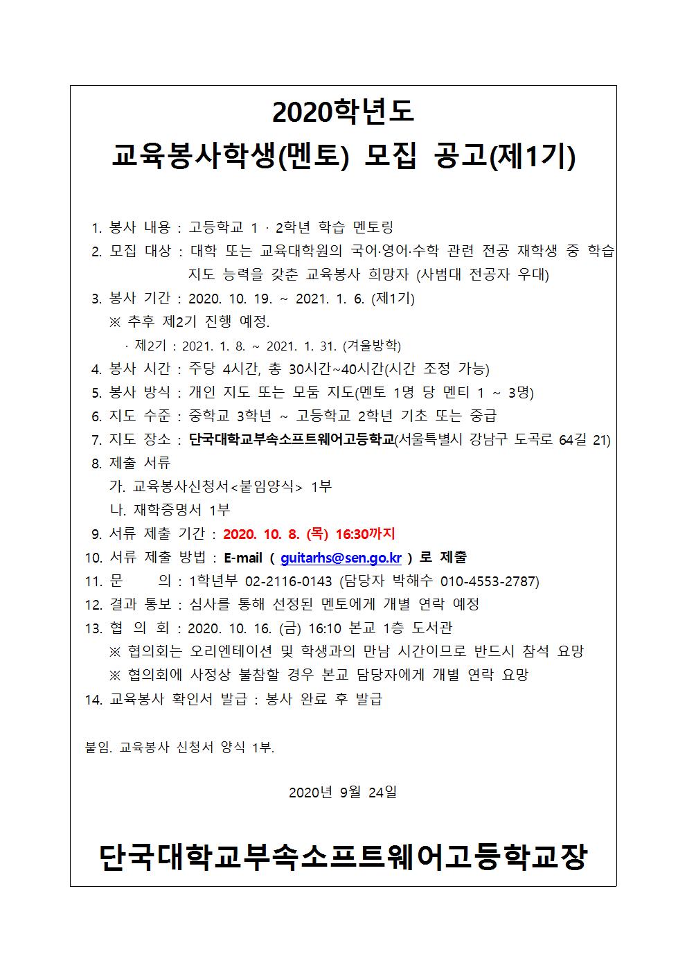 교육봉사학생(멘토) 모집 공고(제1기).hwp