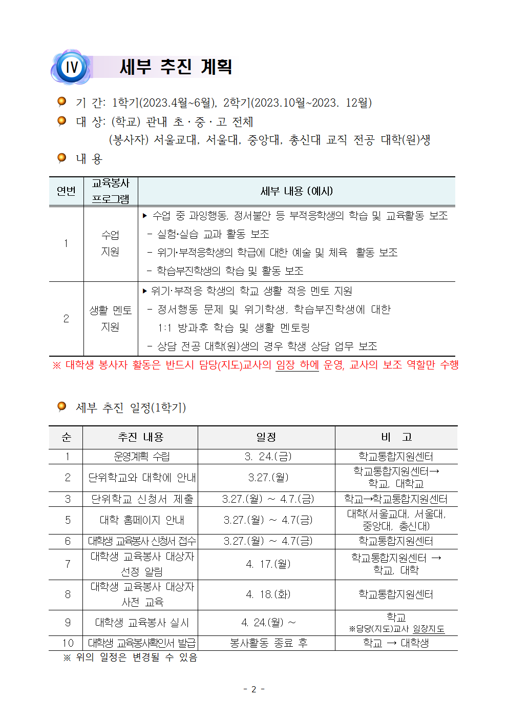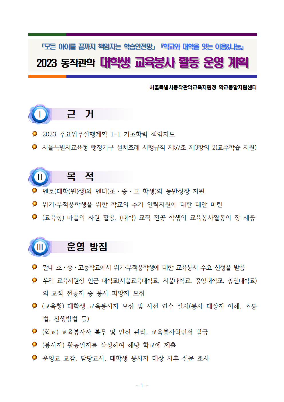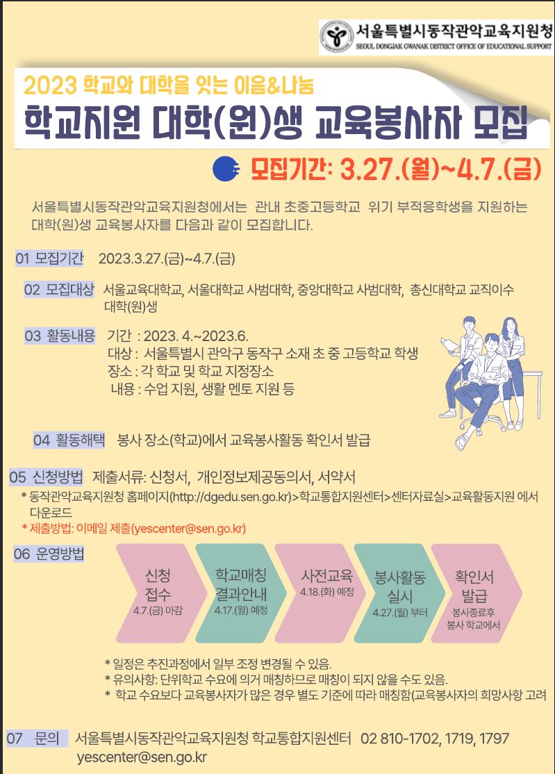 2023 동작관악 [이음&나눔] 대학생 교육봉사 활동 운영 계획