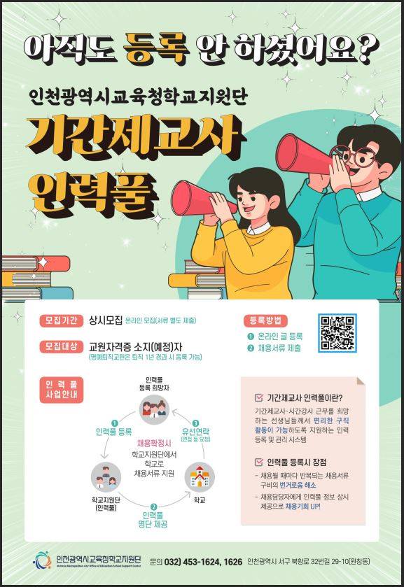 인천광역시교육청학교지원단 기간제교사 인력풀 등록 안내