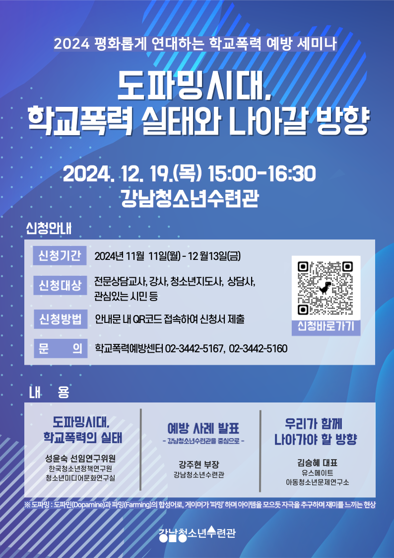 2024 평화롭게 연대하는 학교폭력 예방 세미나 안내 (강남청소년수련관)